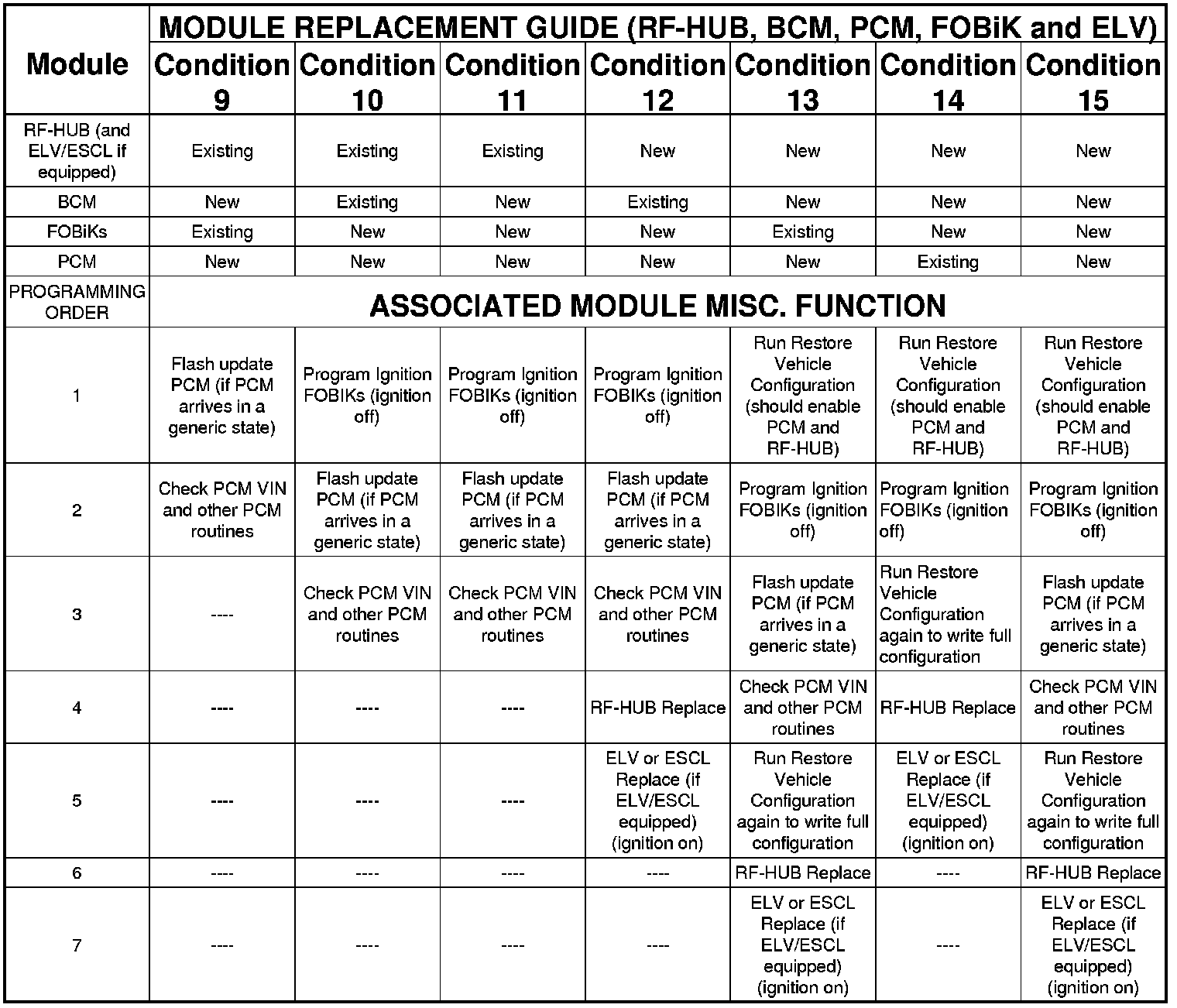 , PCM, FOBiK and ELV REPLACEMENT AND PROGRAMMING ORDER GUIDE