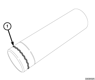 3. Apply Mopar(R) Stud and Bearing Mount to the new spark plug tube approximately 3 mm (0.118 in.) from the end of the tube, in a 2 mm (0.078 in.) wide bead (1).