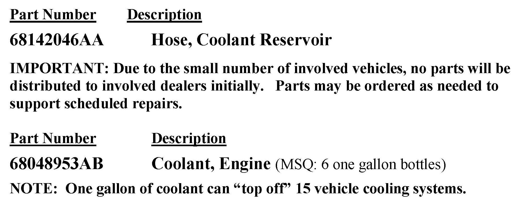 The coolant reservoir outlet hose on about 2,620 of the above vehicles may leak coolant. Engine operation with a low coolant level could cause engine damage and/or low passenger compartment heater output.