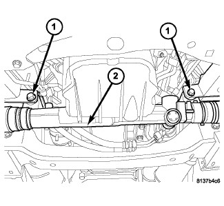 21. Position the steering gear (2), install mounting bolts (1) and tighten to 95 Nm (70 ft. lbs.).