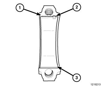 12. Wipe the connecting rod cap (1) clean and lubricate with clean engine oil and install the bearing (3).