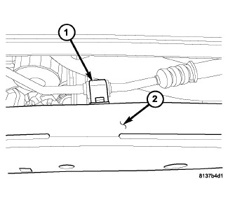13. Connect battery negative cable (2) to battery post. It is important that this is performed properly.