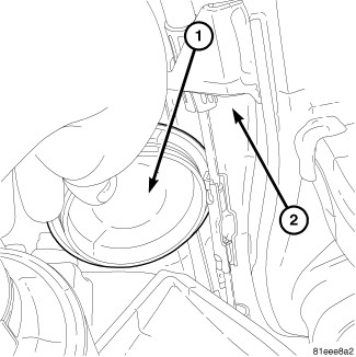 13. Remove the front mount bolt cover (1) located at the top of the axle carrier (2).