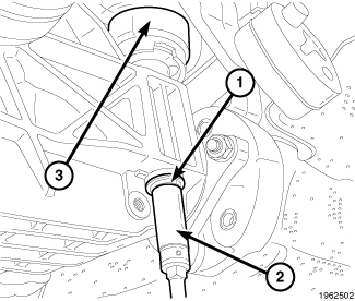 6. Apply alignment index marks (3) to the propeller shaft rubber coupler (1) and axle flange (2).