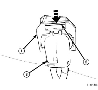 NOTE: To release wheel speed sensor connector from body wiring harness connector (1) in following step, move retaining clip (2) as indicated here, then pull sensor connector (3) outward.
