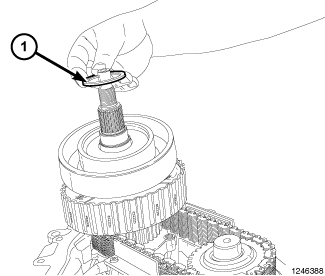 27. Install the thrust washer (1) onto the Input Shaft (2).