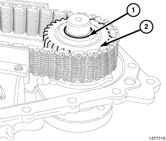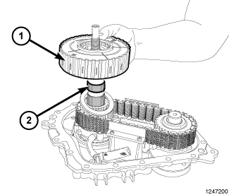 19. Position the Oil Pump Assembly (1) onto the Input Shaft (2).