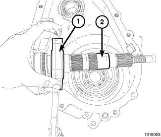 20. Slide the Oil Pump down until it fully engages the Splines (2) on the Input Shaft (1).