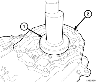 15. Use Seal Installer (1) to install the front input shaft seal into the front case half (2).