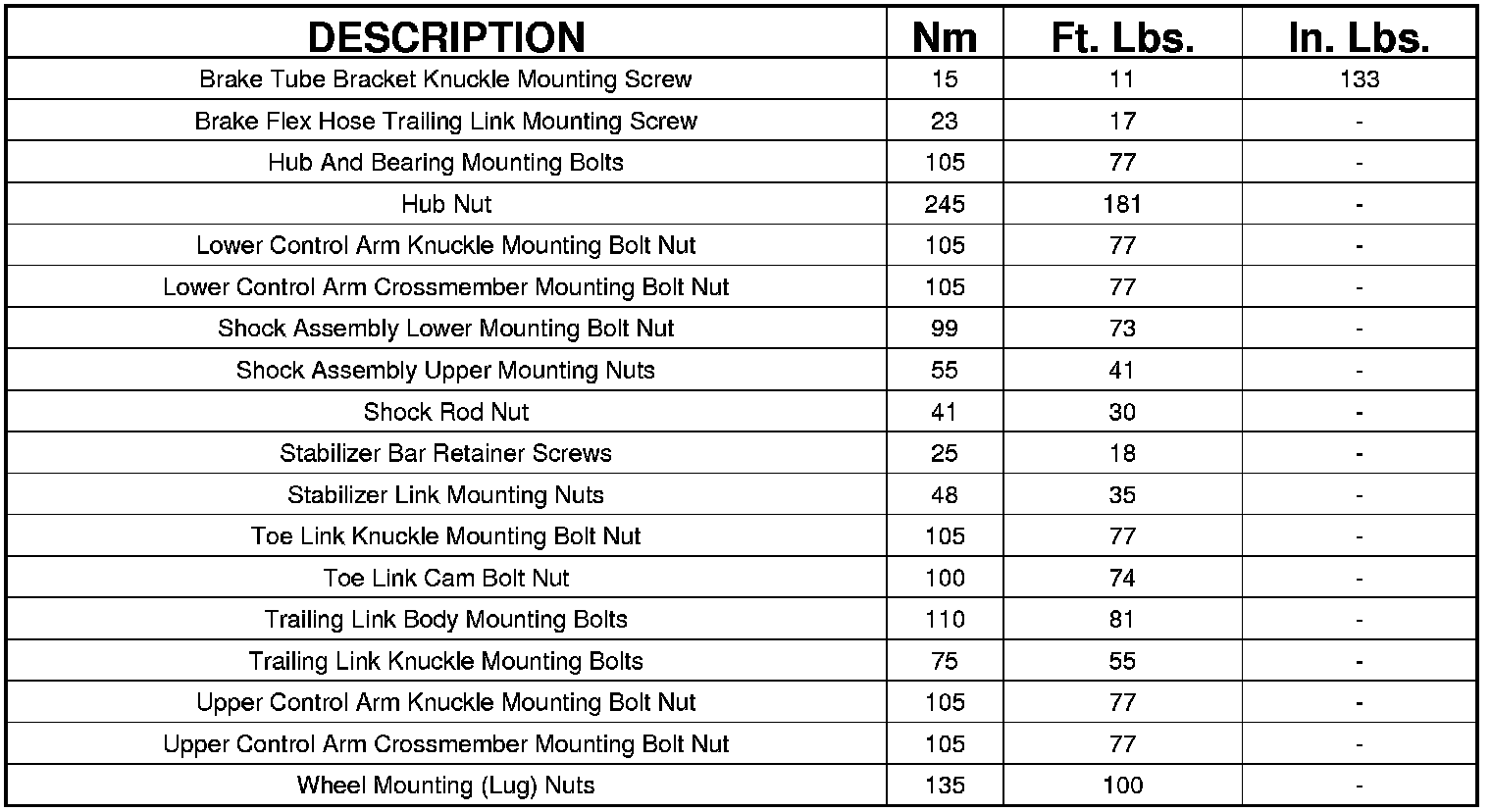 Rear Suspension Specifications