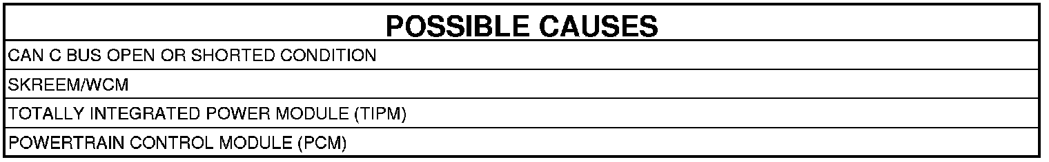 The Powertrain Control Module (PCM), doesn't receive a SKREEM message over the CAN C circuit for seven consecutive seconds. The circuit is continuously monitored.
