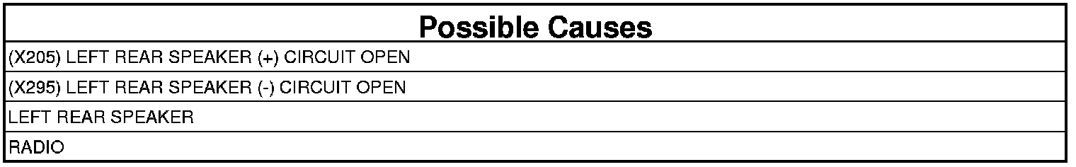 - Repair open in the (X205) Left Rear Speaker (+) circuit.