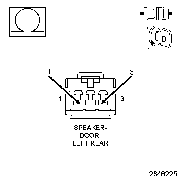 NOTE: The graphic shows the connector for reference only. Measure between the speaker terminals.