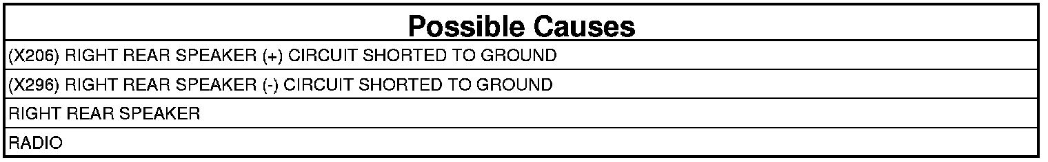 - Repair the (X206) Right Rear Speaker (+) circuit for a short to ground.