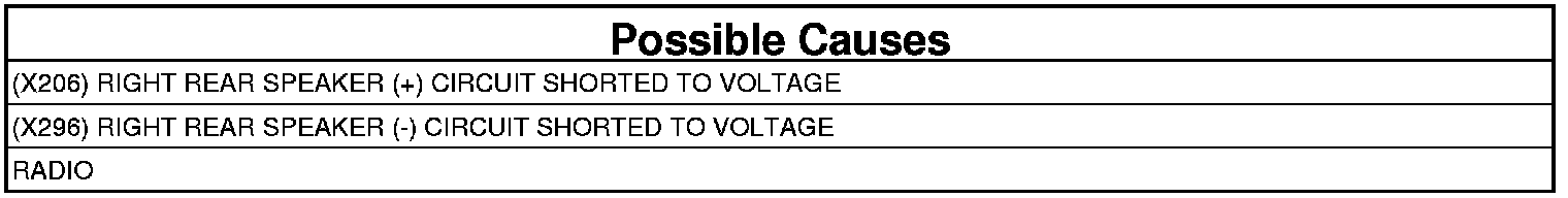 - Repair the (X206) Right Rear Speaker (+) circuit for a short to voltage.