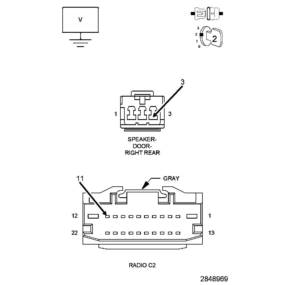 The (X206) Right Rear Speaker (+) circuit and the (X296) Right Rear Speaker (-) circuit are outputs of the Radio. The Radio controls and monitors these circuits for a concern.