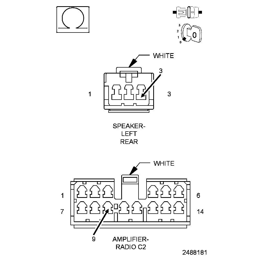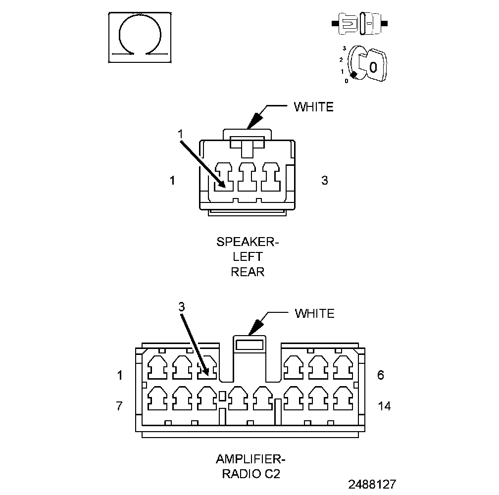 6. With a voltmeter set to read in A/C voltage, measure the voltage of the Amplified Left Rear Speaker circuits in the Amplified Left Rear Speaker harness connector.