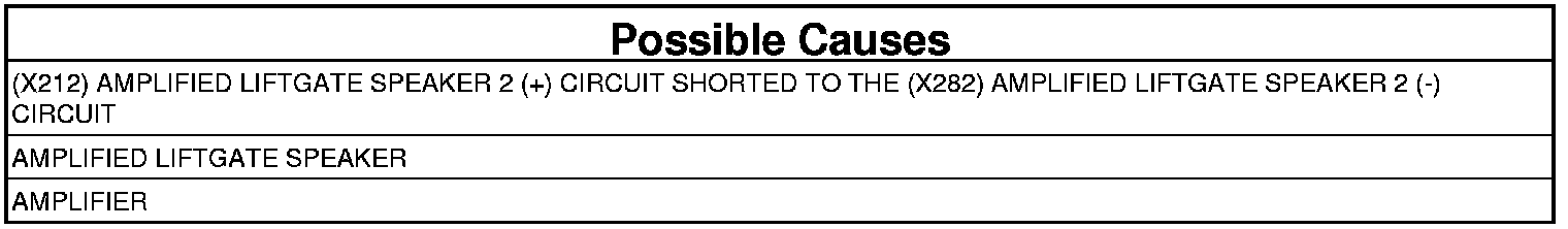 - Repair the (X212) Amplified Liftgate Speaker 2 (+) circuit, and the (X282) Amplified Liftgate Speaker 2 (-) circuit for a short together.