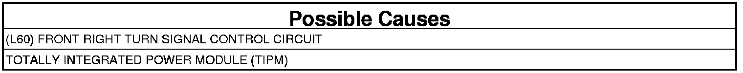 - Repair the (L60) Front Right Turn Signal Control circuit for a short to ground.