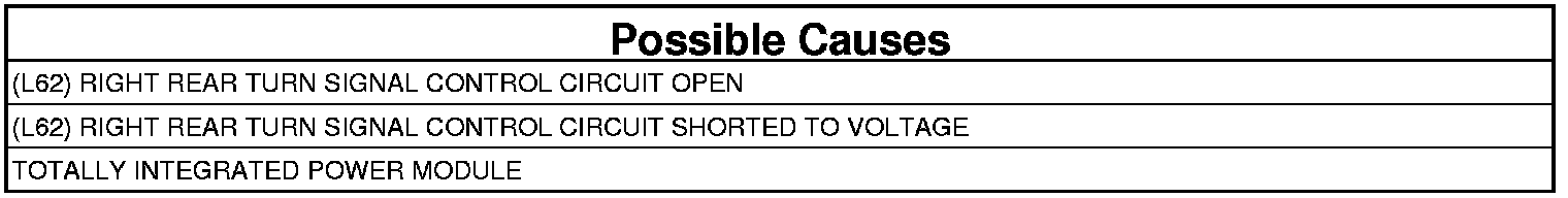- Repair short to voltage on the (L62) Right Rear Turn Signal Control circuit.
