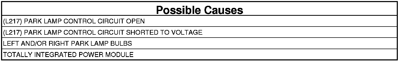 - Repair the (L217) Park Lamp Control circuit for an open condition.