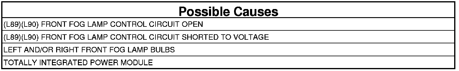 - Repair the (L89)(L90) Front Fog Lamp Control circuit for a short to voltage condition.