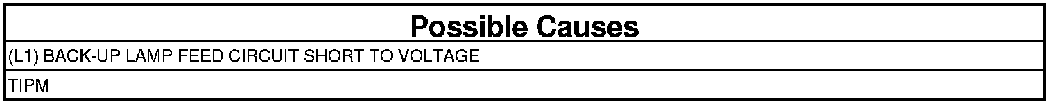 - Repair the (L1) Back-up Lamp Feed circuit for a short to voltage.