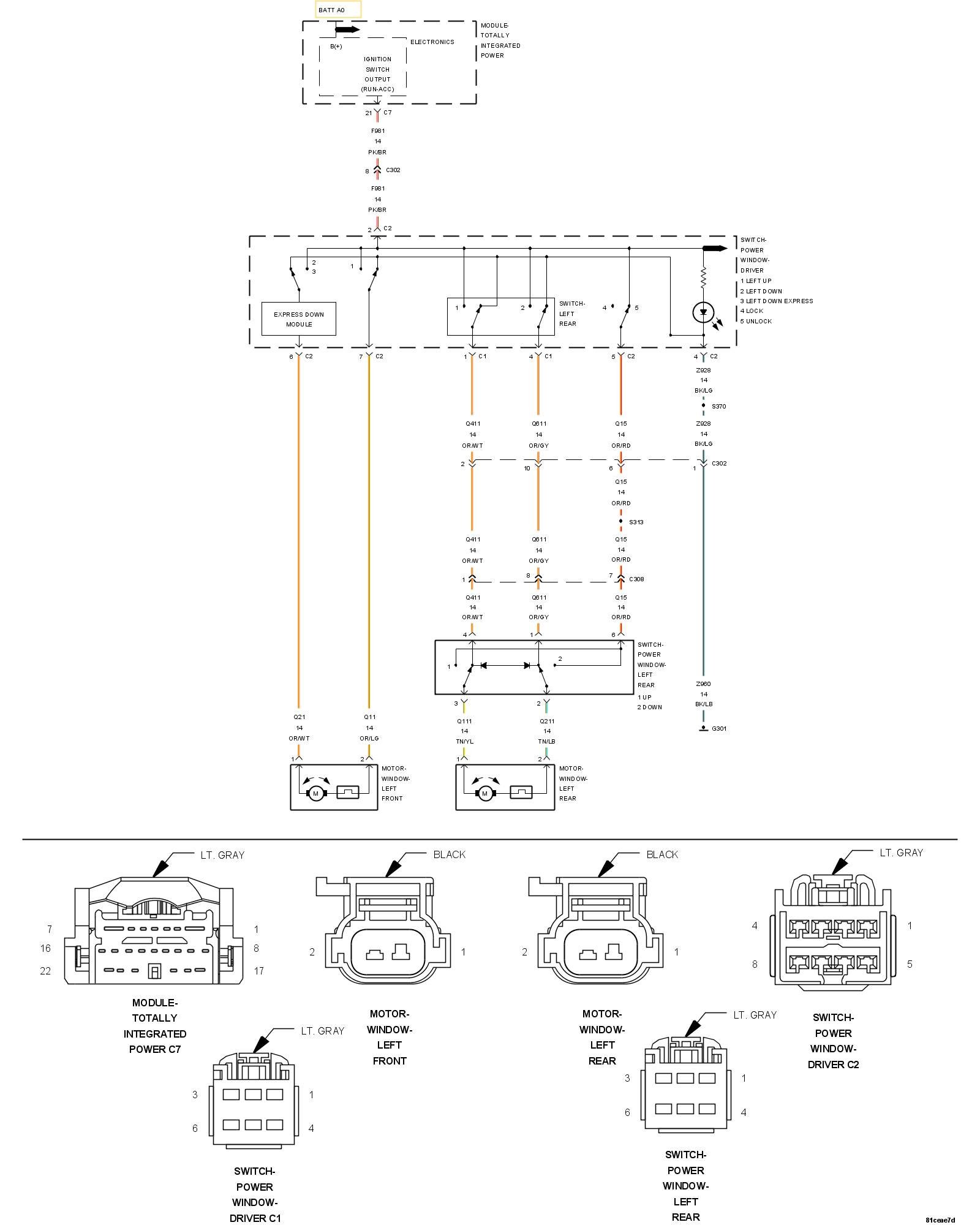 NOTE: The schematic shows just the Left Rear Window Motor circuit. The other Passenger Window Motor circuits are similar.