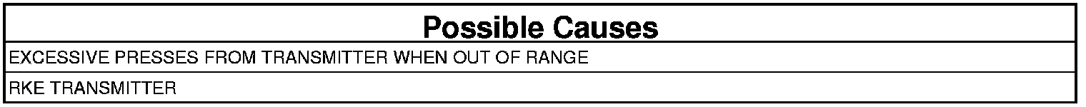 NOTE: The most probable cause for this code to set is if the Wireless Control Module (WCM) senses over 150 presses from the RKE transmitter, when it is out of range.