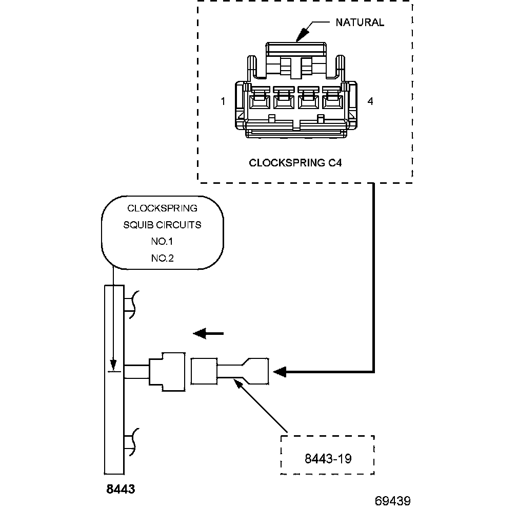 1. Disconnect the SRS Load Tool Kit and SRS Load Tool Jumper from the Clockspring C4 connector.