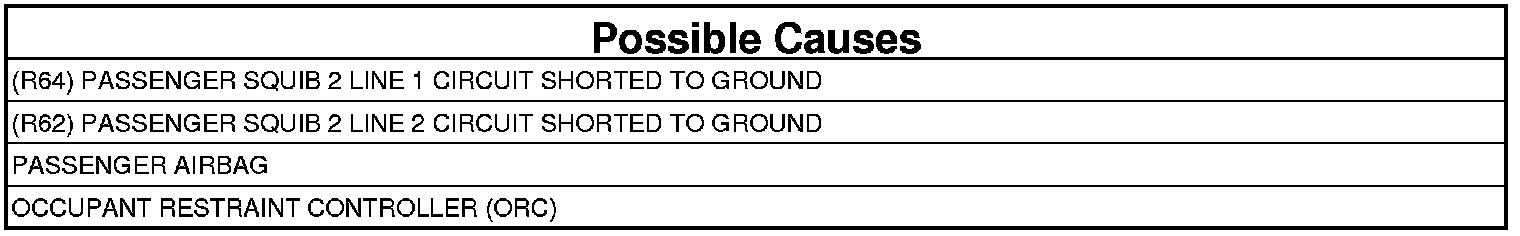 - Repair the Passenger Squib 2 circuits with resistance below 10k Ohms for a short to ground.