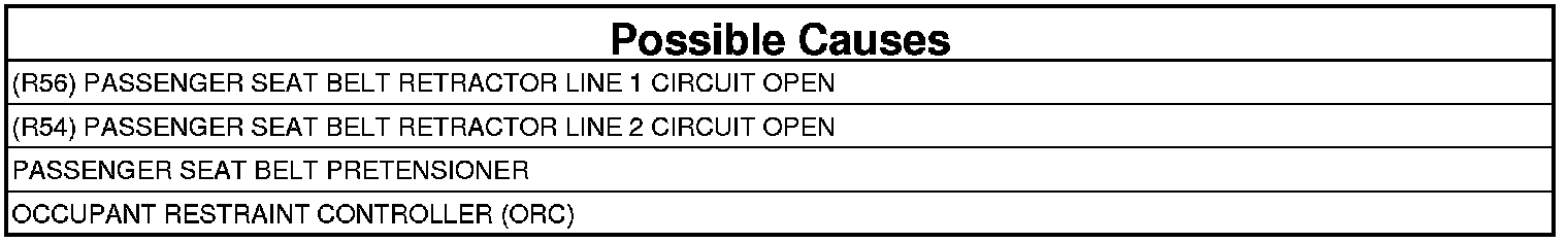 - Repair the (R54) Passenger Seat Belt Tensioner Line 2 circuit for an open.