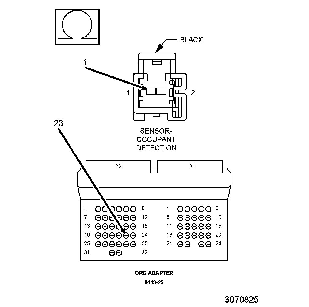 The Occupant Detection Sensor (ODS) is a resistive sensor that is located in the front passenger seat. This sensor is only used for passenger seat belt reminder. The seat sensor assumes a passenger is present when a minimum of 53.5 pounds (20kg) of weight is placed in the seat. The resistance of the sensor decreases, signaling to the ORC module that a passenger is present. The ORC then transmits this information to the Instrument cluster over the CAN bus. The passenger is only reminded to buckle up if the vehicle speed is over 5mph (8kph) for 45 seconds. The ODS receives battery voltage and clean ground through dedicated sensor plus and minus circuits from the ORC. The ORC receives, processes, and continuously monitors (monitor rate of 500 ms) the analog signal from the ODS. The ODS component is not repairable, if determined inoperable, and would require to be replaced with a new component.