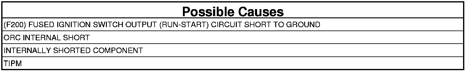 - Repair the (F200) Fused Ignition Switch Output (Run-Start) circuit for a short to ground.