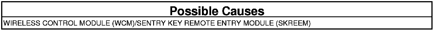 The Wireless Control Module (WCM)/Sentry Key Remote Entry Module (SKREEM) receives different information than is configured within the module. Examples include Model Year, Country Code, Body Style, Platform, Remote Start, Sun Roof.