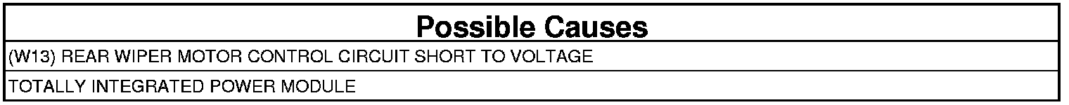 - Repair the (W13) Rear Wiper Motor Control circuit for a short to voltage.