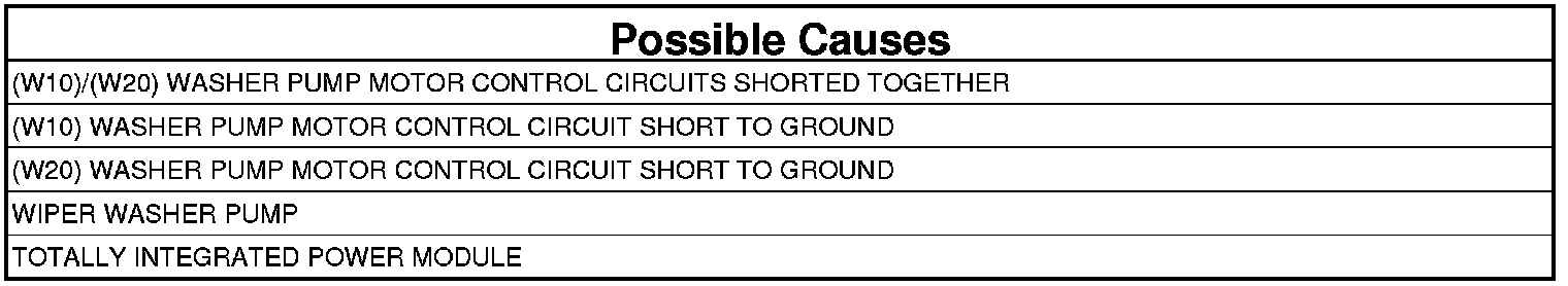 - Repair the (W10) and (W20) Washer Pump Motor Control circuits for a short together.