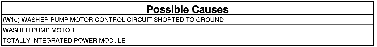 - Repair the (W10) Washer Pump Motor Control Output circuit for a short to ground.