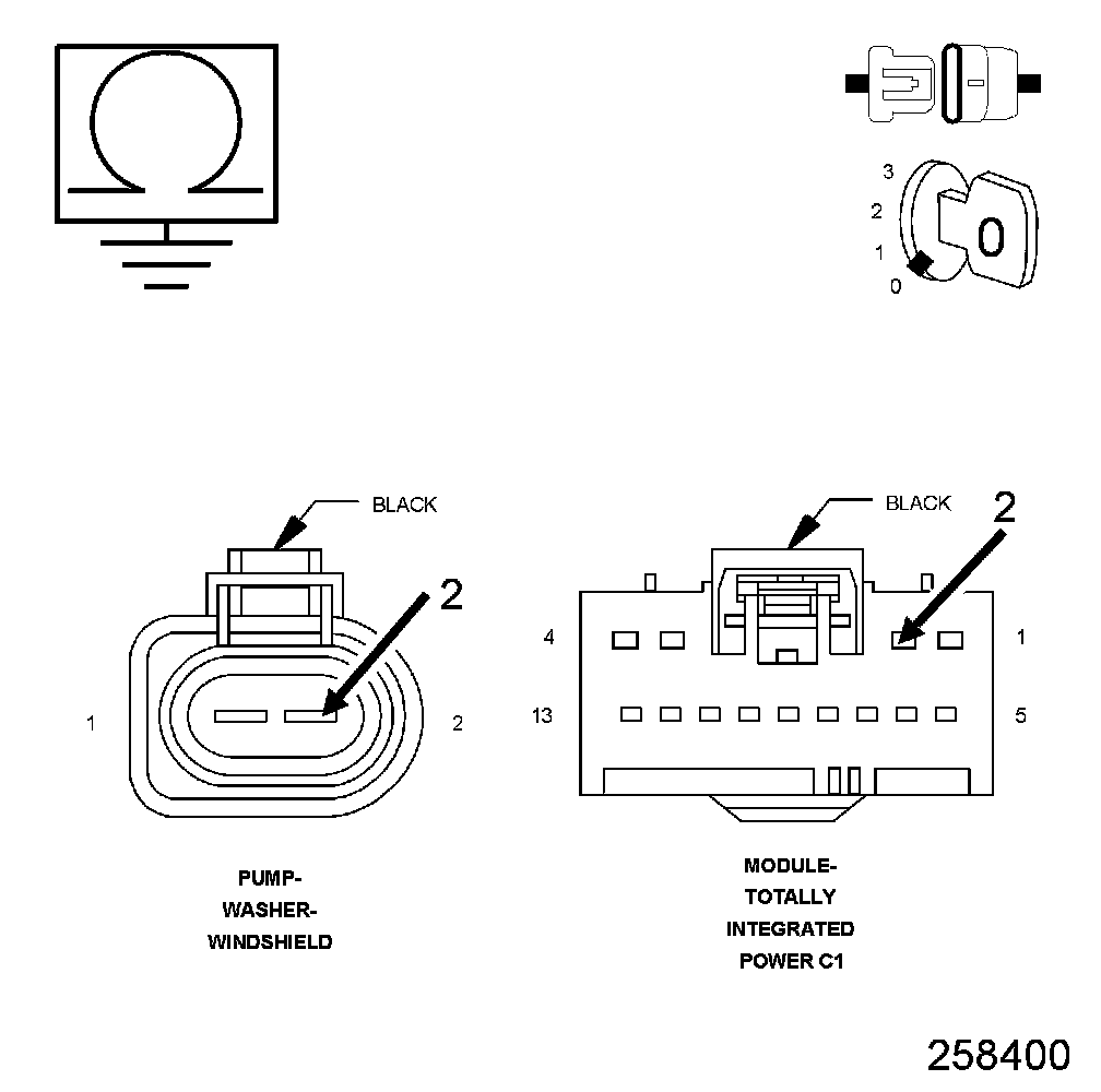 2. (W10) WASHER PUMP MOTOR CONTROL CIRCUIT SHORTED TO GROUND