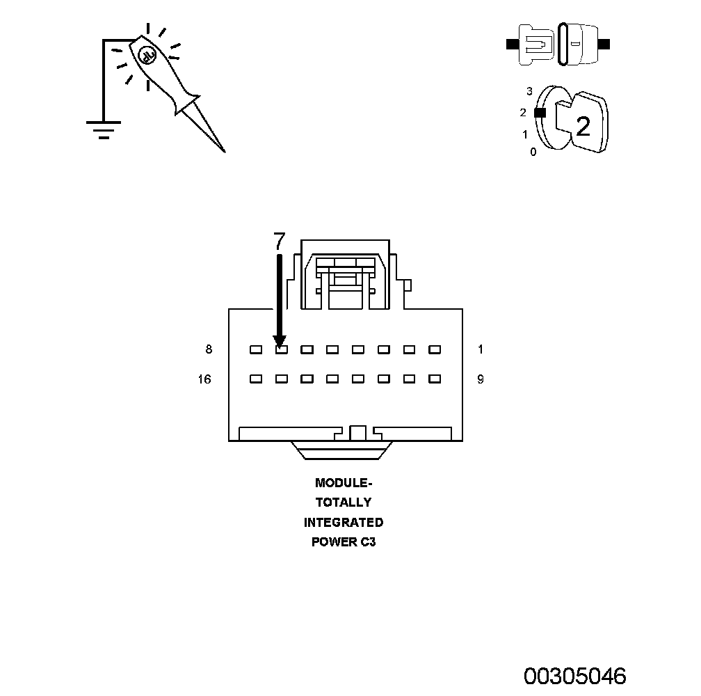 4. Using a 12-volt test light connected to ground, check the (L53) Stop Lamp Switch Output circuit in the Totally Integrated Power Module (TIPM) C3 harness connector while pressing and releasing the brake pedal several times.
