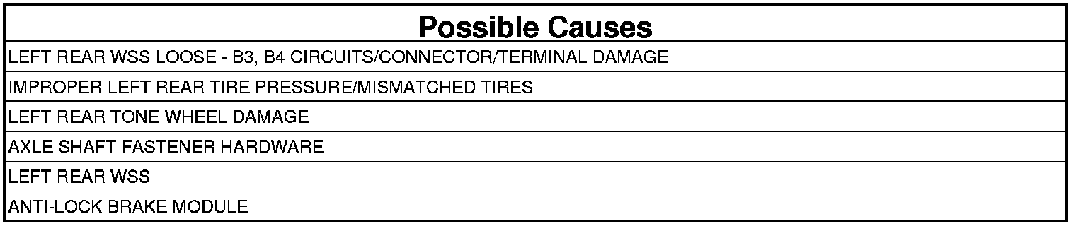 When the Left Rear Wheel Speed Sensor (WSS) reading is different from the readings received from the other sensors at a vehicle speed above 40 km/h (25 mph). The Anti-Lock Brake Module compares WSS readings from side-to-side on an axle and front-to-rear.