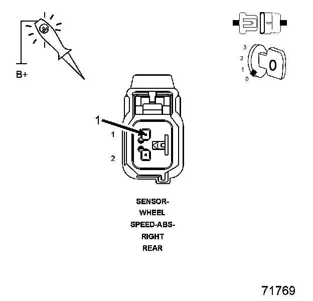 1. Using a 12-volt test light connected to 12-volts, probe the (B1) Right Rear WSS Signal circuit.