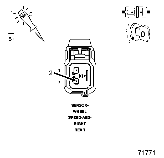 2. Using a 12-volt test light connected to 12-volts, probe the (B1) Right Rear WSS Signal circuit.
