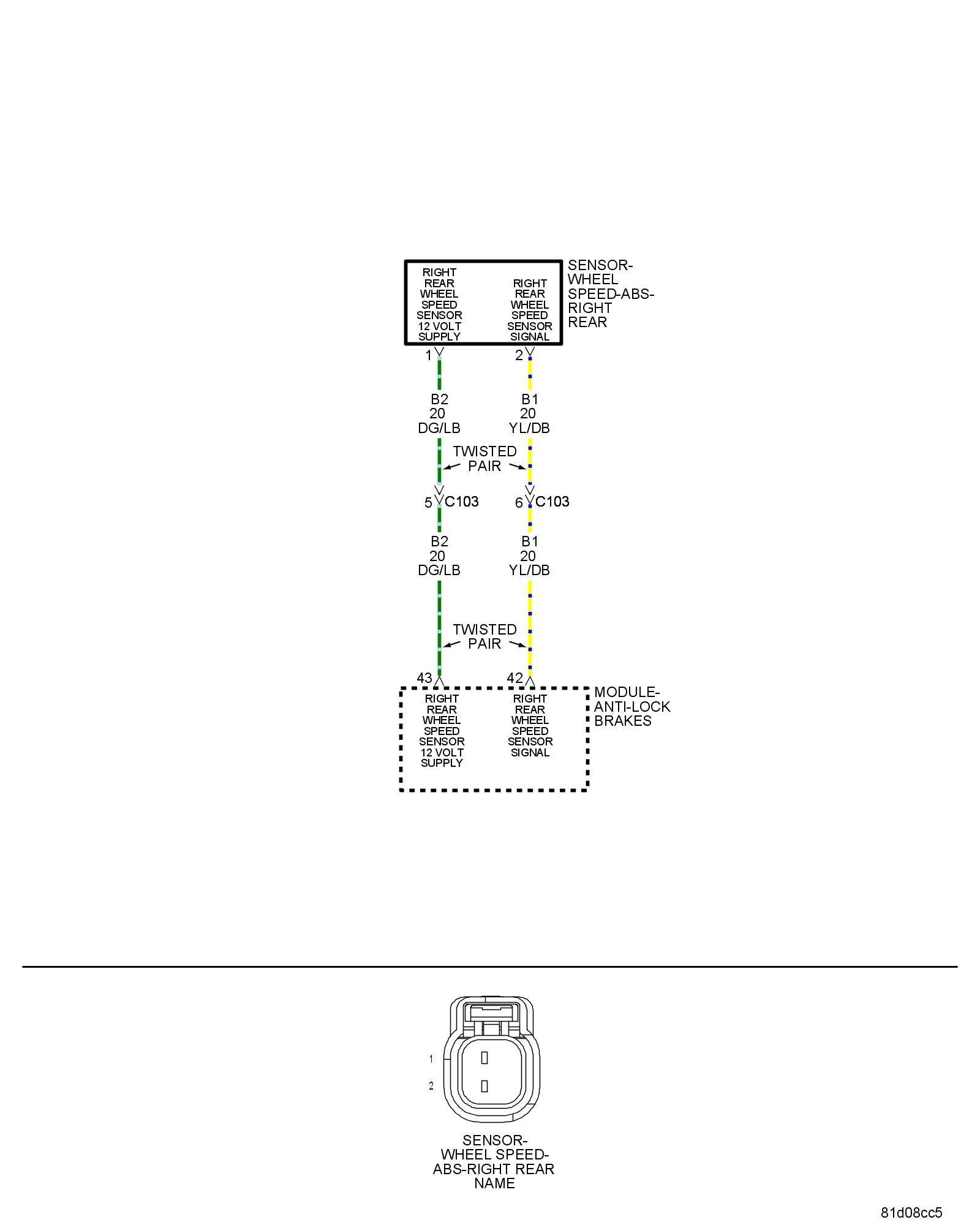 - Repair the (B1) Right Rear WSS Signal circuit and the (B2) Right Rear WSS Supply circuit for a short together.