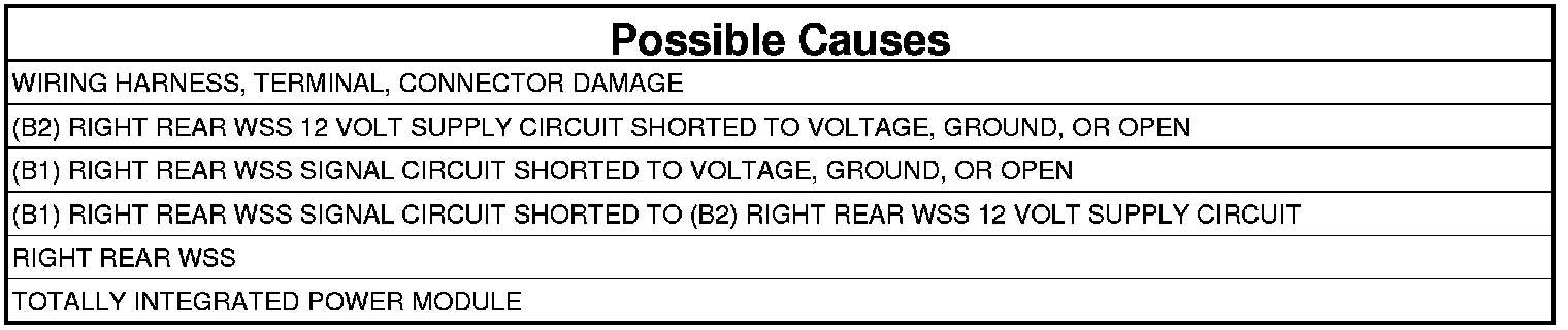 - Repair the (B1) Right Rear WSS Signal circuit for a short to voltage.