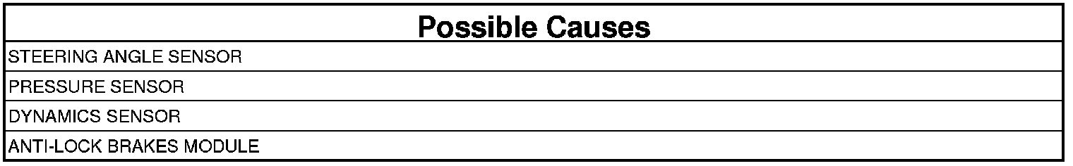 If the Anti-Lock Brakes Module detects a fault with the Steering Angle Sensor, the Pressure Sensor, or the Dynamics Sensor.