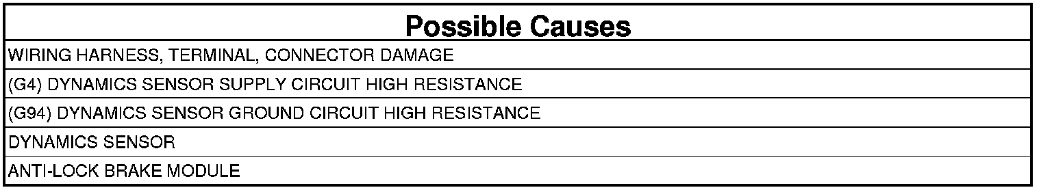 - Repair the (G94) Dynamics Sensor Ground circuit for high resistance.