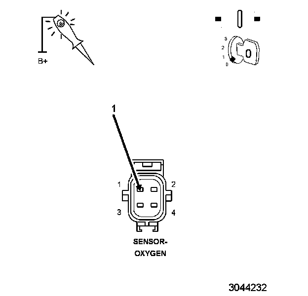 1. Using a 12-volt test light connected to Fused B (+), probe the O2 Sensor Ground circuit in the O2 Sensor harness connector.