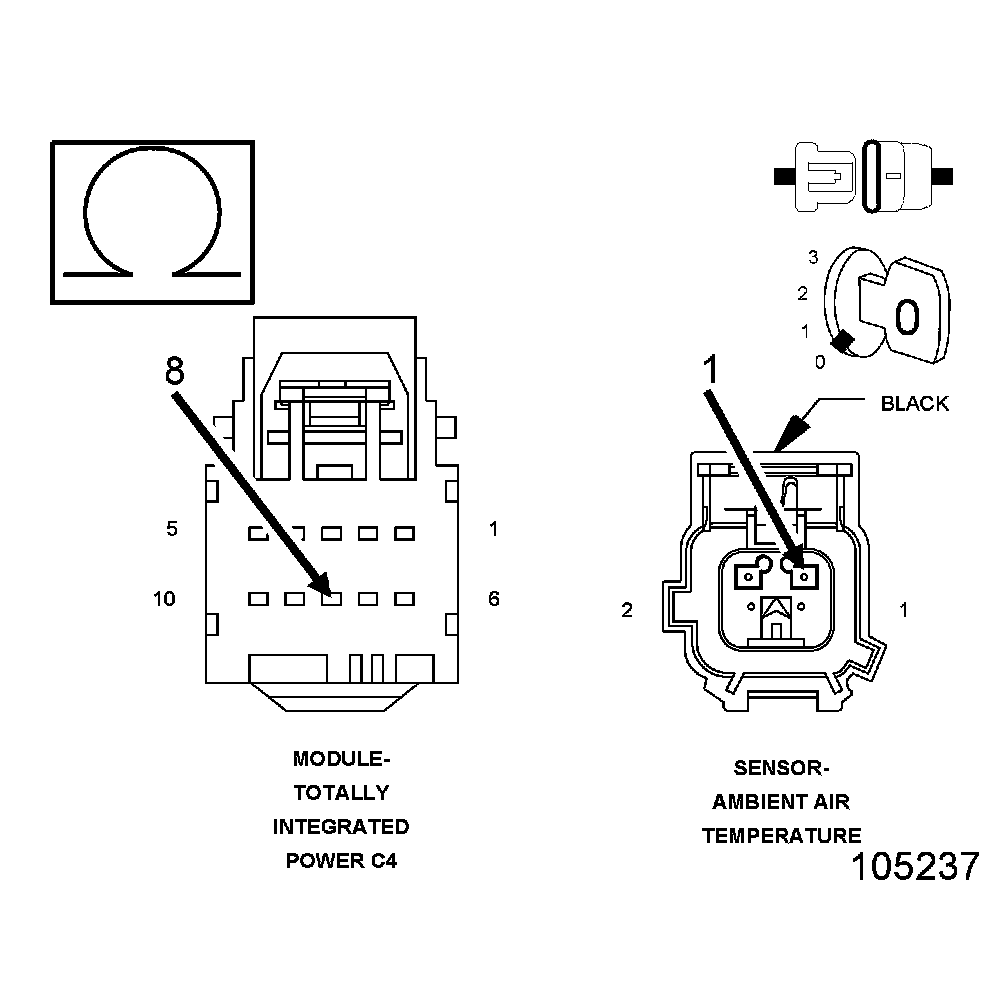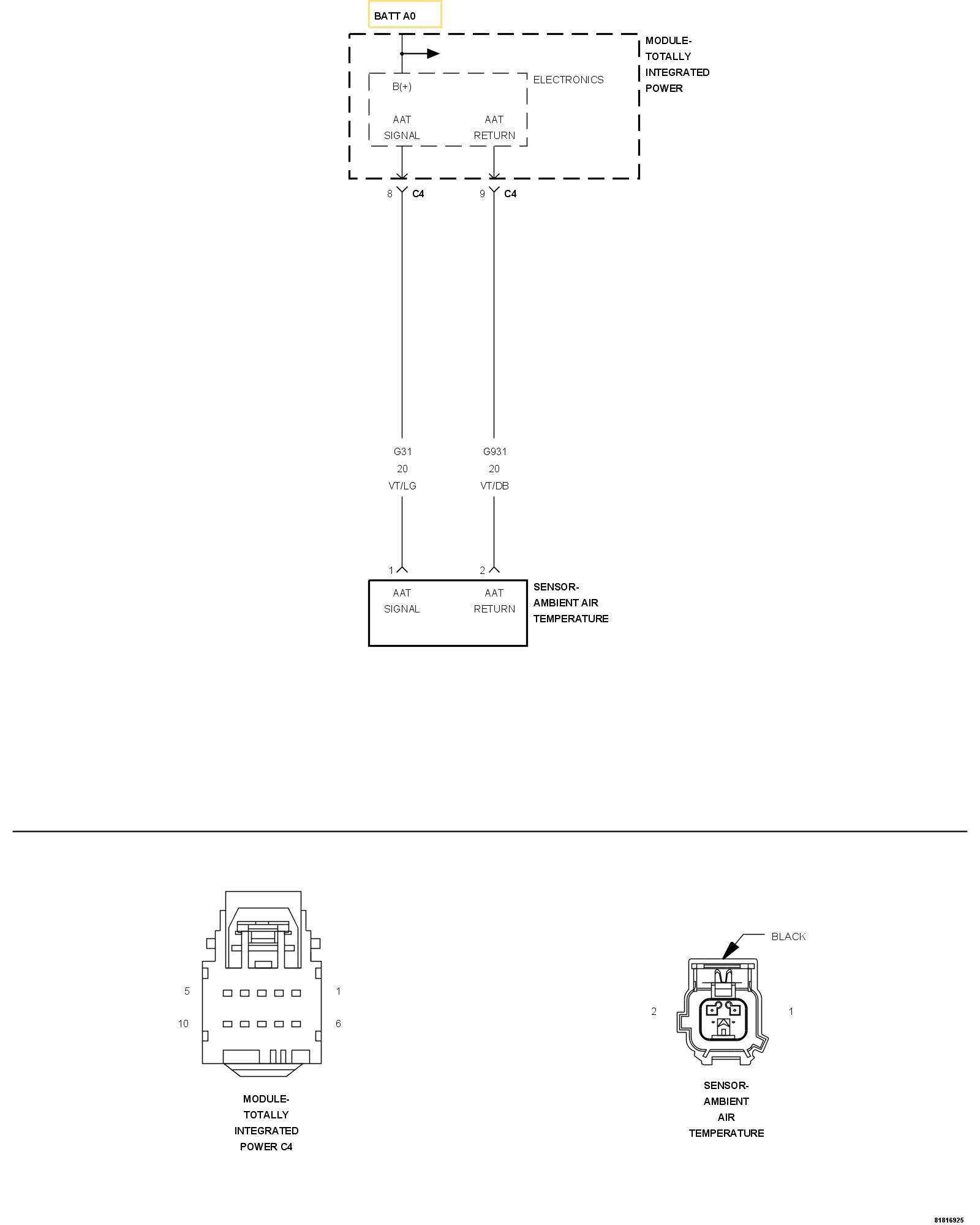1. Using the wiring diagram/schematic as a guide, inspect the wiring and connectors between the Ambient Air Temperature Sensor and the Totally Integrated Power Module (TIPM).