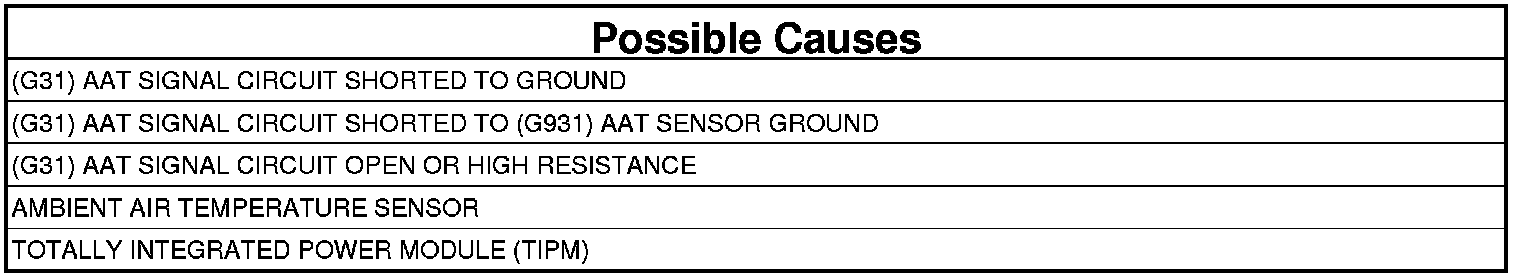 - Repair the (G31) AAT Signal circuit for a short to the (G931) AAT Sensor Ground circuit.